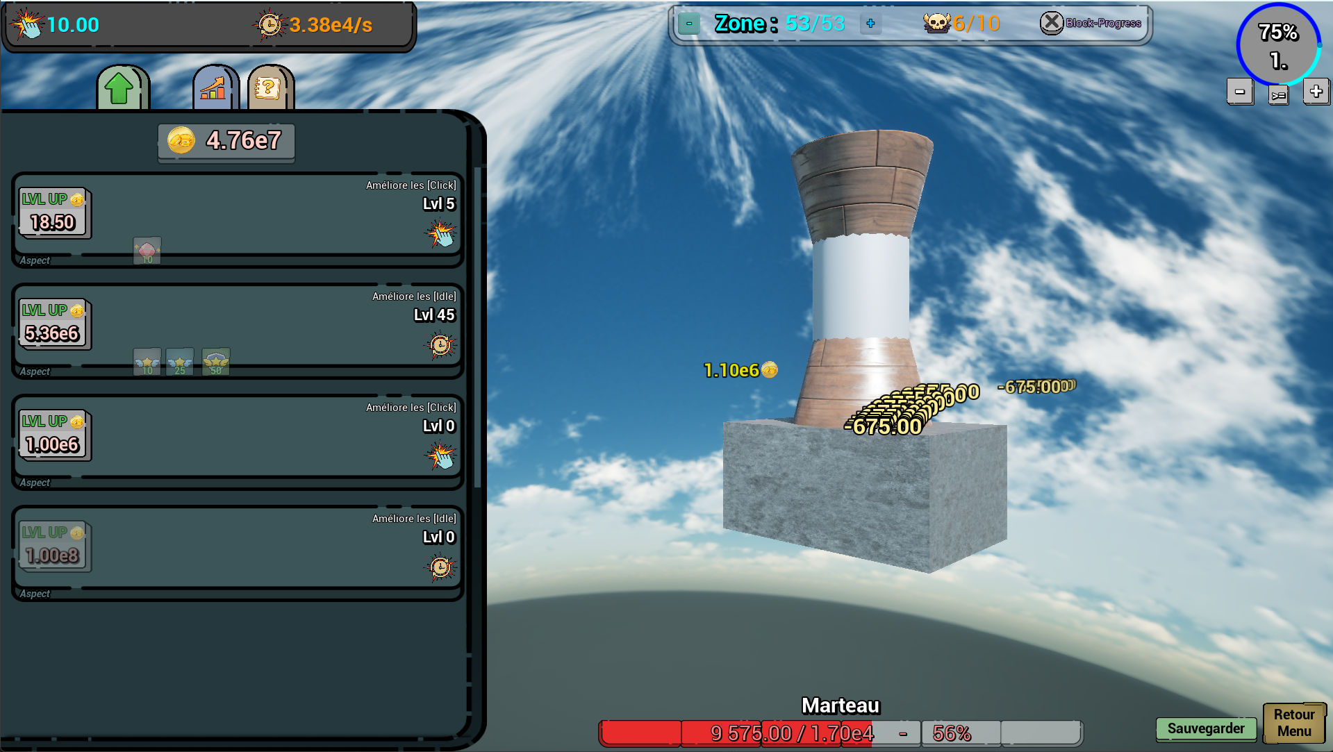 Frappe les mobs, accumule des Gold, utilise les pour frapper encore plus, et débloque le Idle pour faire autre chose de ta vie en attendant que les stats monte tout seul !